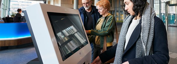 At the registration desk, a staff member will help you change your information. At the registration kiosks and sign-in kiosks, you can change your data yourself.