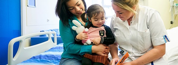 Co-Care is based on the principles of family-oriented care. This means that the child and its parents are involved in a child’s daily care, for instance during the 'Co-Care consultation'. This is when our doctors and nurses, together with the child and its parents, make a treatment plan for the coming days. Every team member is invited to tell how things are going and ask questions. We are jointly responsible for the best result. Co-care is practised in many more places in our hospital; it is integrated into all departments (through Family Advisory Committees, for example) and has a place within the management.