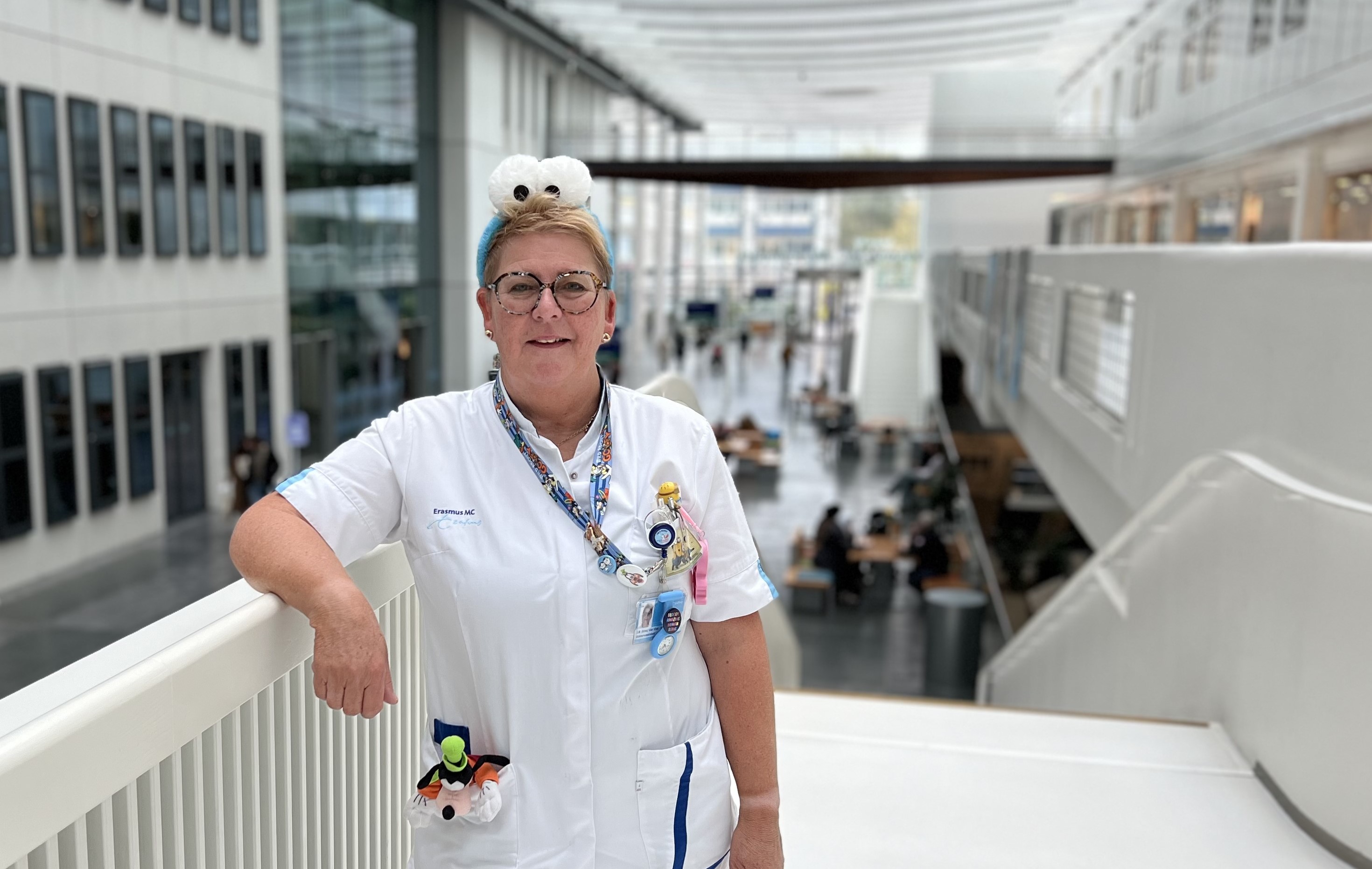 Doktersassistent Irma werkt al heel wat jaar in het Erasmus MC Sophia Kinderziekenhuis. Ze valt in het ziekenhuis op door haar mutsjes en hoofddeksels. Wat ooit begon met een simpele Sinterklaas- en kerstmuts die ze tijdens de feestdagen opzette, is inmiddels een begrip geworden. “Als ik niks op mijn hoofd heb, vragen kinderen ernaar,” vertelt Irma.