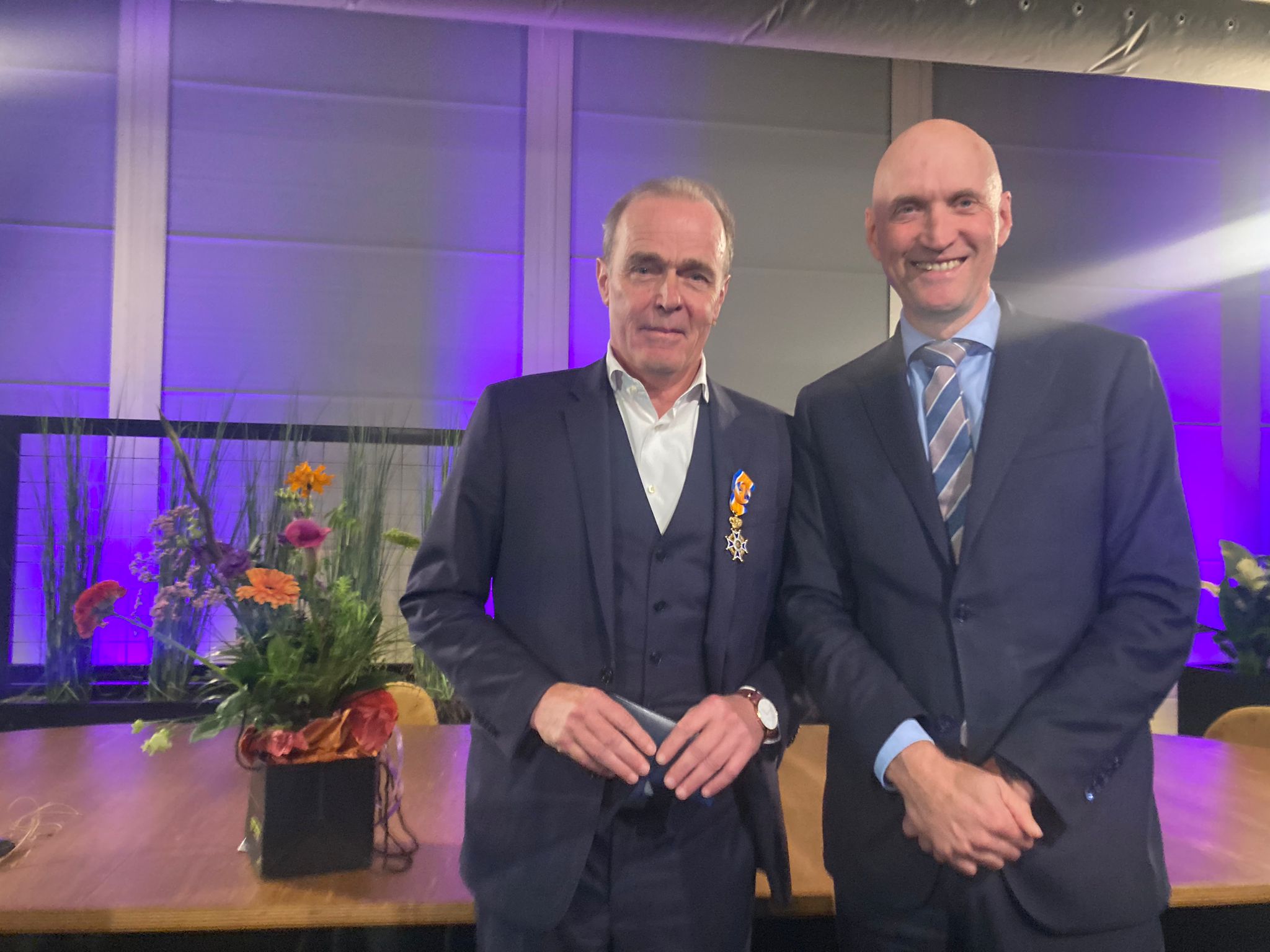 Casper van Eijck met zijn koninklijke onderscheiding naast demissionair minister Ernst Kuipers