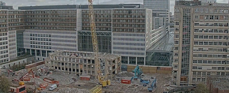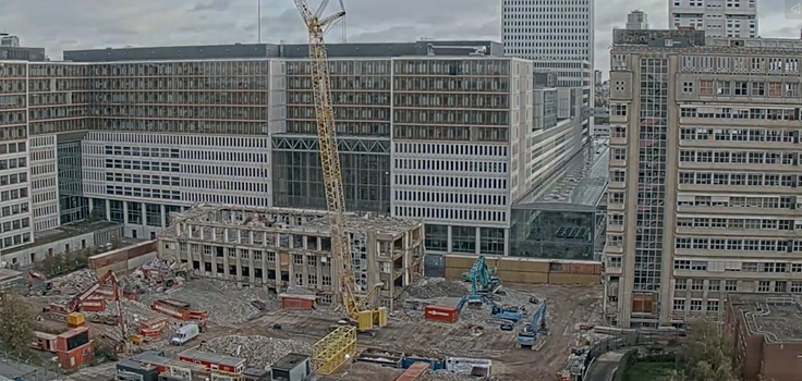 De webcam op het dak van Little C, aan de overkant van de ‘s-Gravendijkwal, heeft de sloop van het gebouw vast gelegd. Die beelden zijn nu verwerkt in een timelapse van minder dan 1 minuut, waardoor het gebouw verdwijnt alsof er een breiwerkje wordt uitgehaald. Bekijk hier het filmpje.