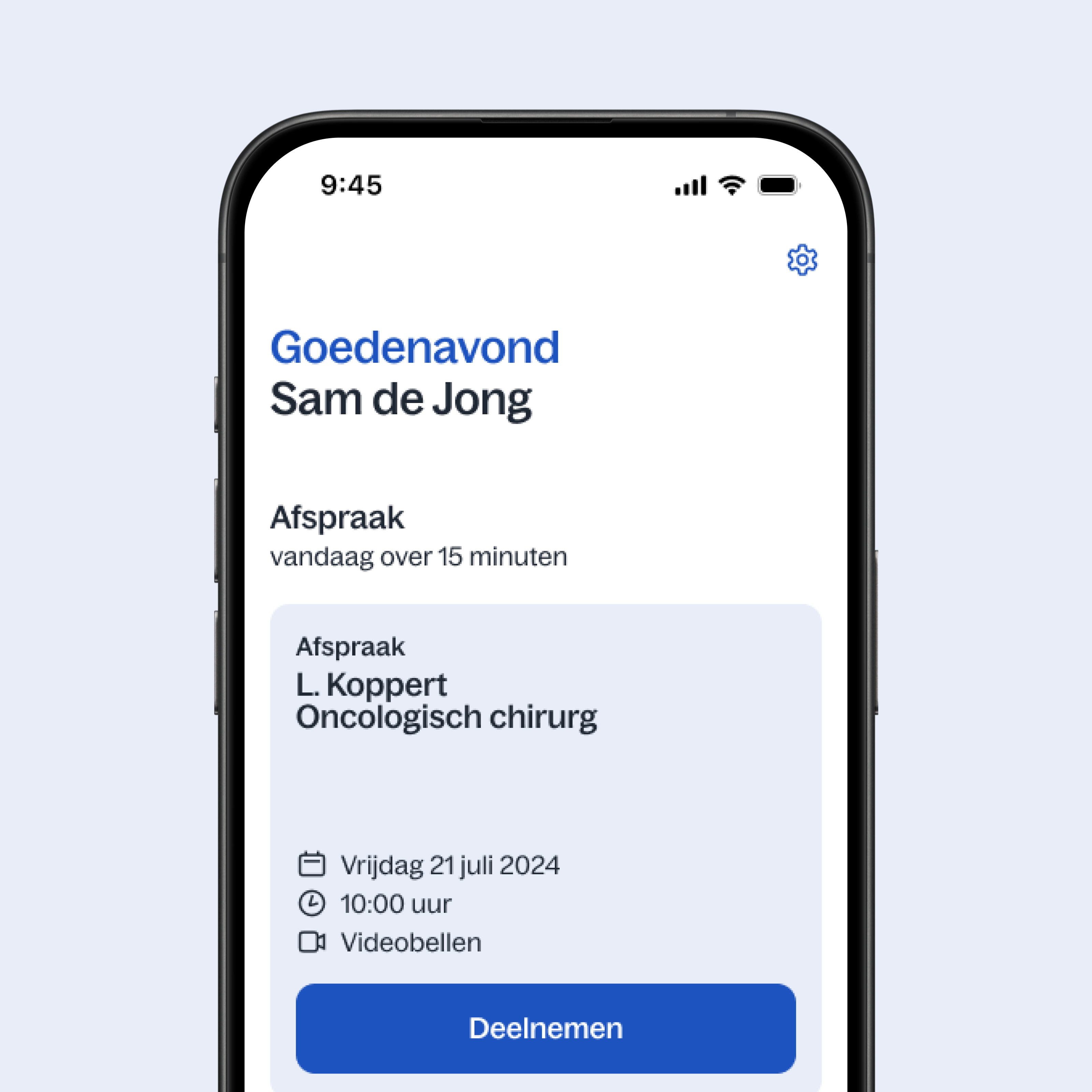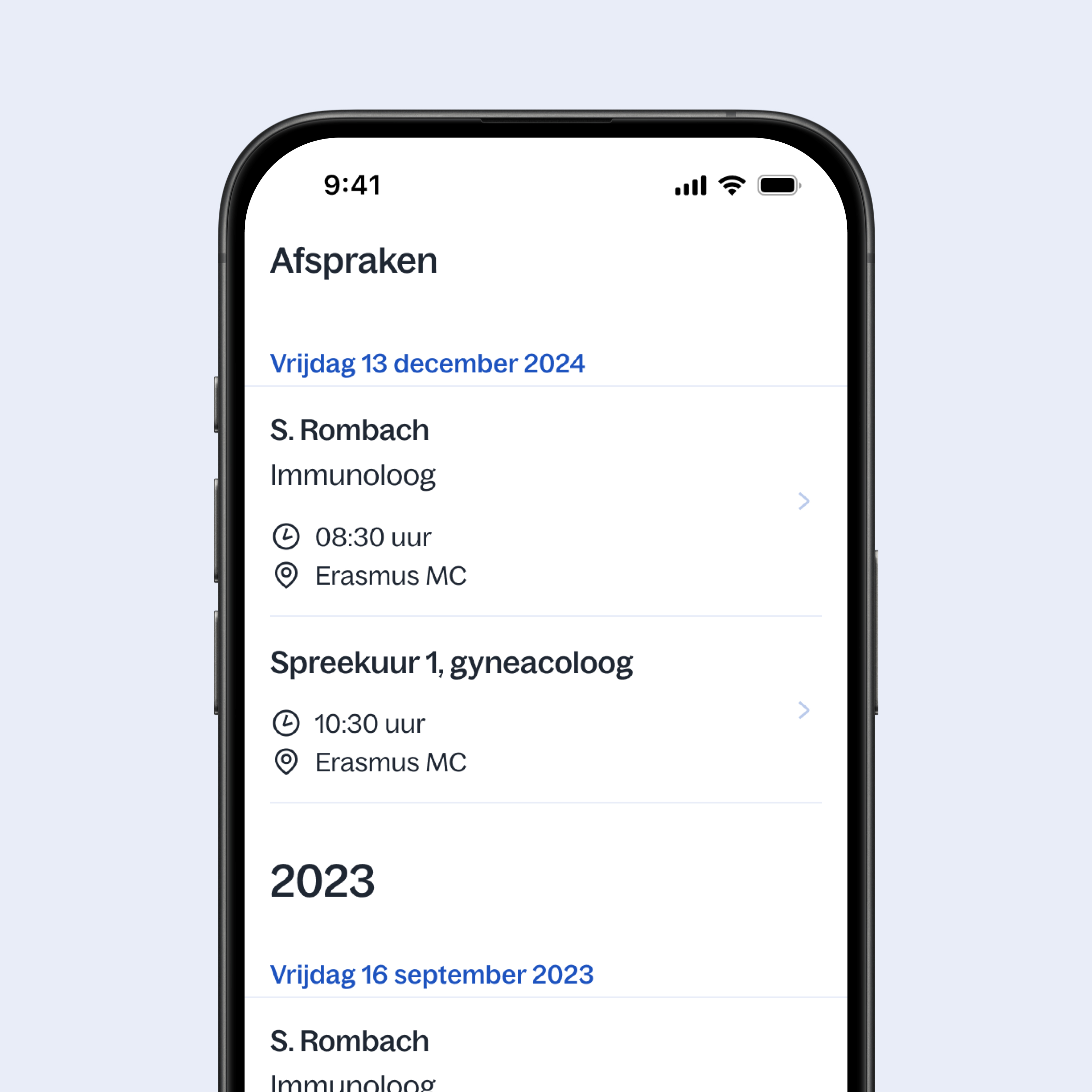 In de app ziet u een actueel overzicht van uw afspraken. Handig. Want zo weet u altijd wanneer u weer naar het ziekenhuis moet.