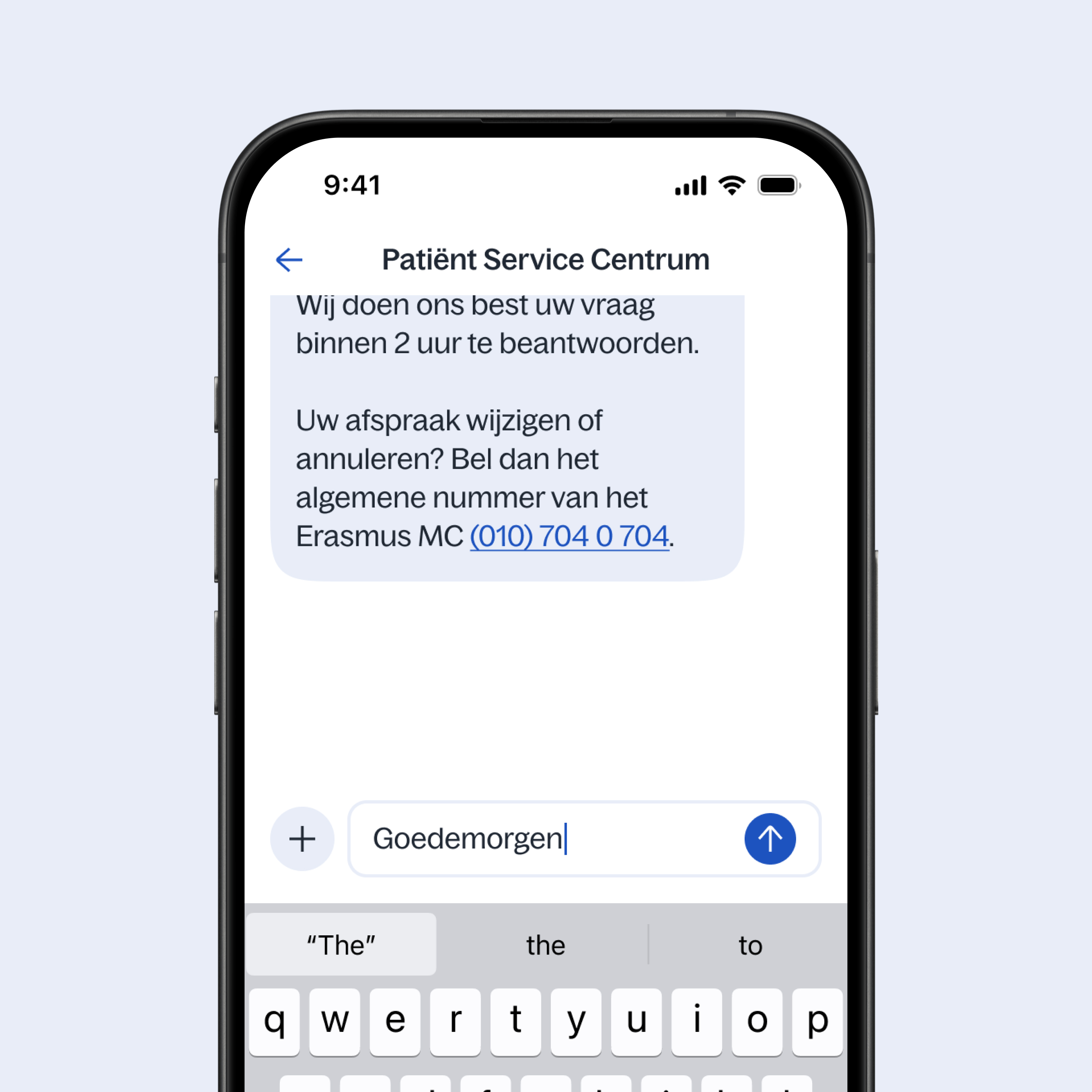 Praktische en niet-medische vragen stelt u via de chat aan het Patiënt Service Centrum. Of stuur een bericht aan uw zorgverlener. Eenvoudig en laagdrempelig.