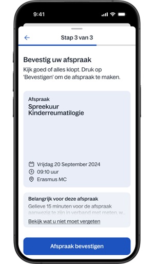 U kunt uw afspraak en de afspraak-informatie inzien in de app. U ontvangt geen (digitale) afsprakenbrief meer.