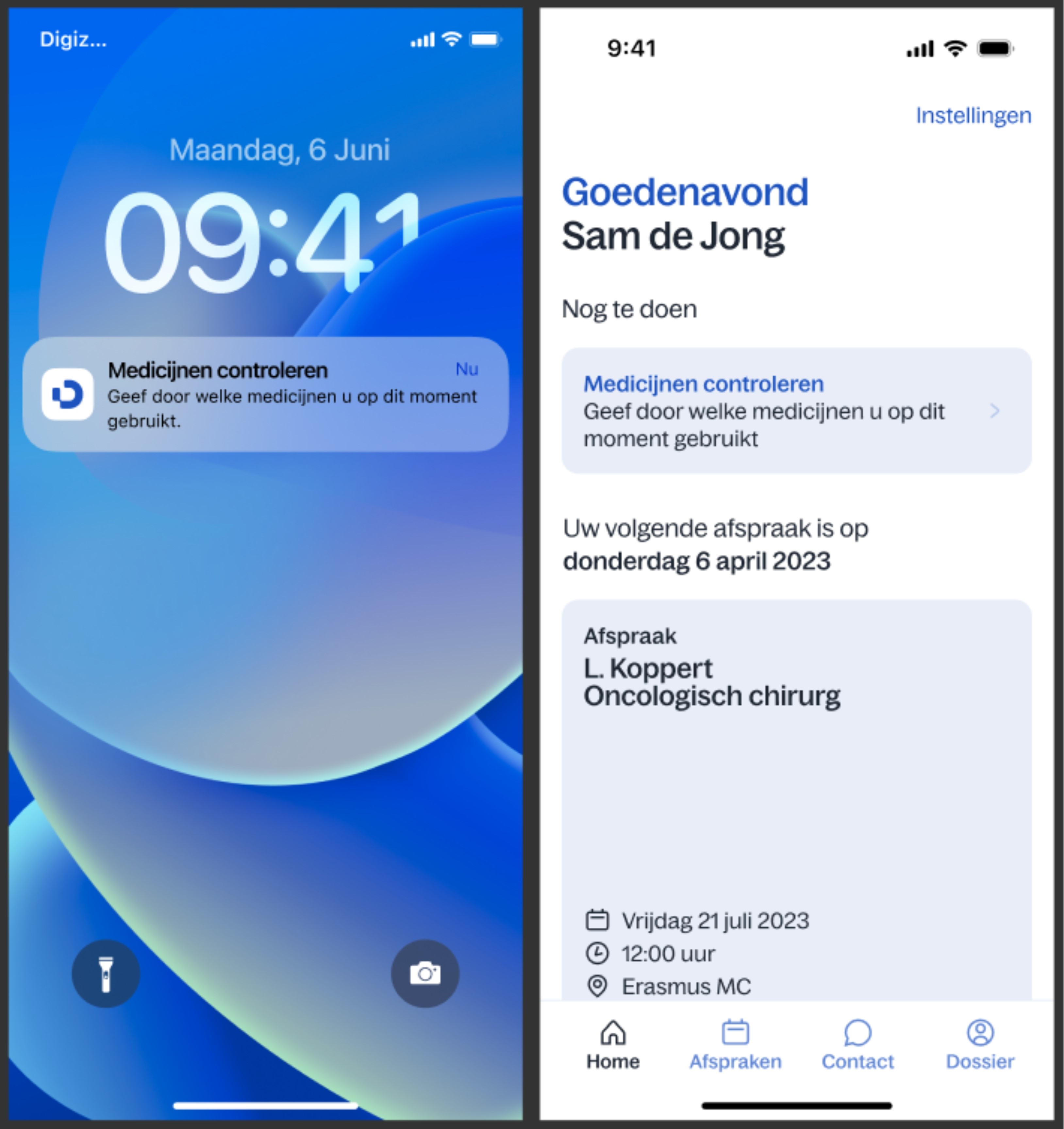 U krijgt een bericht in de app wanneer u uw medicijnen moet controleren. Dit is ongeveer 1 tot 2 weken voor uw opname.