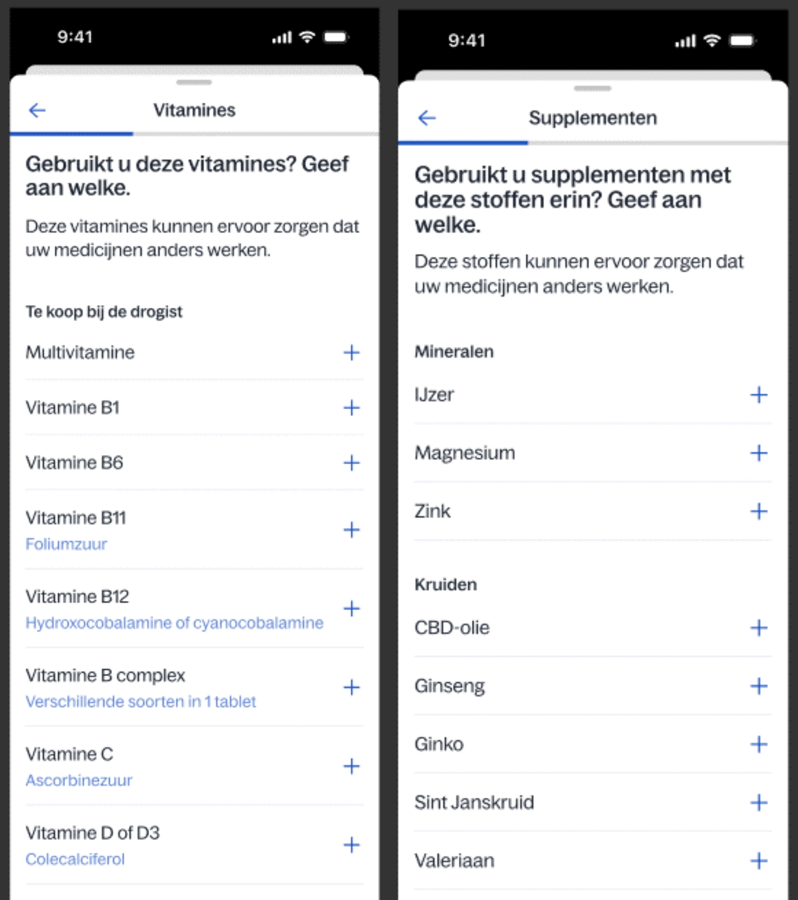 In de volgende stappen vragen wij of u pijnstillers, zelfzorgmiddelen, vitamines of supplementen gebruikt.