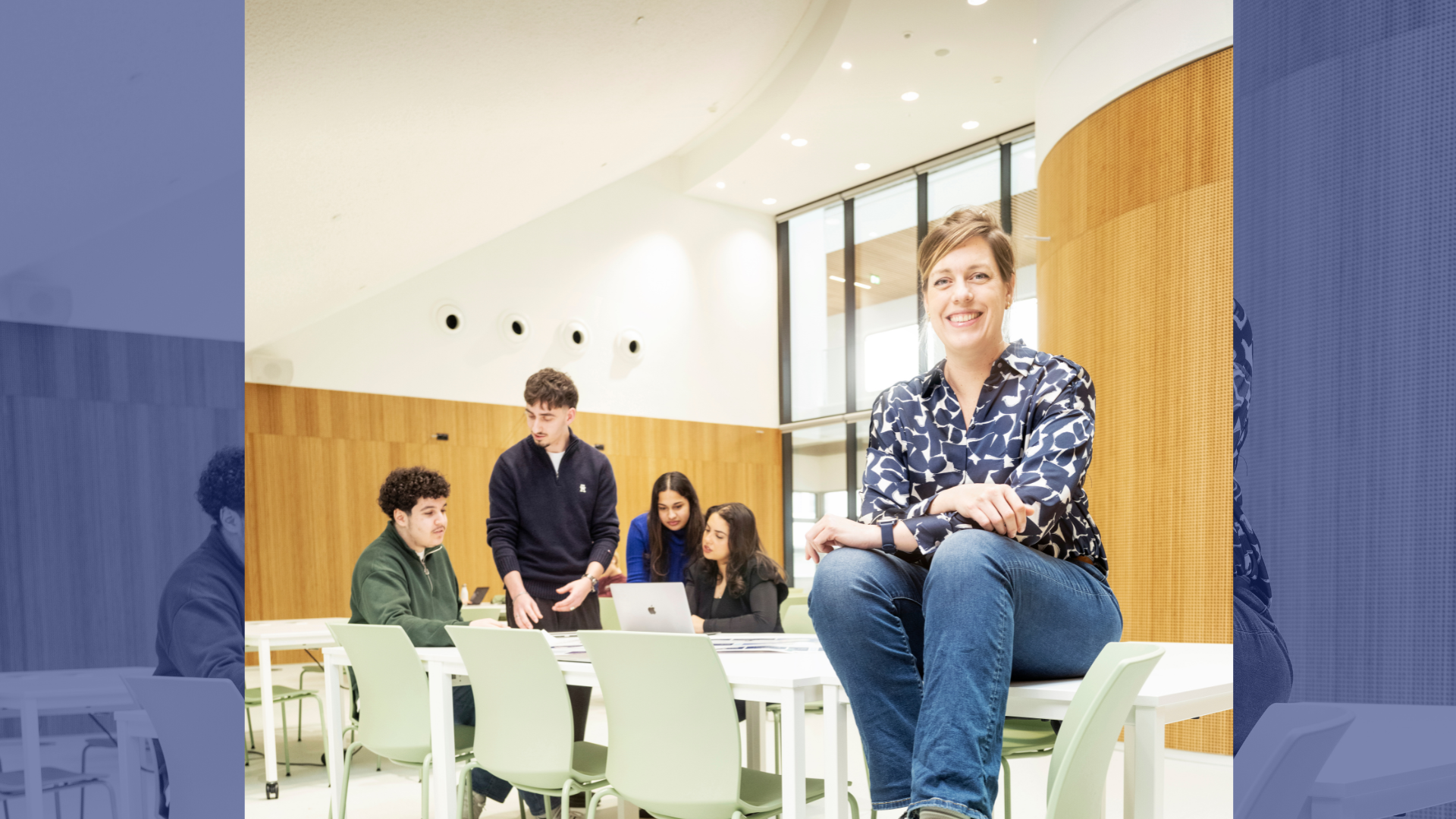 En de docenten? ‘Die weten hoe ze les moeten geven. Ze hebben korte lijntjes met de inhoudsexperts, maar kunnen vooral goed zien welke student wat stiller is, wie vaak het voortouw neemt en hoe ze het beste uit elke student kunnen halen.’