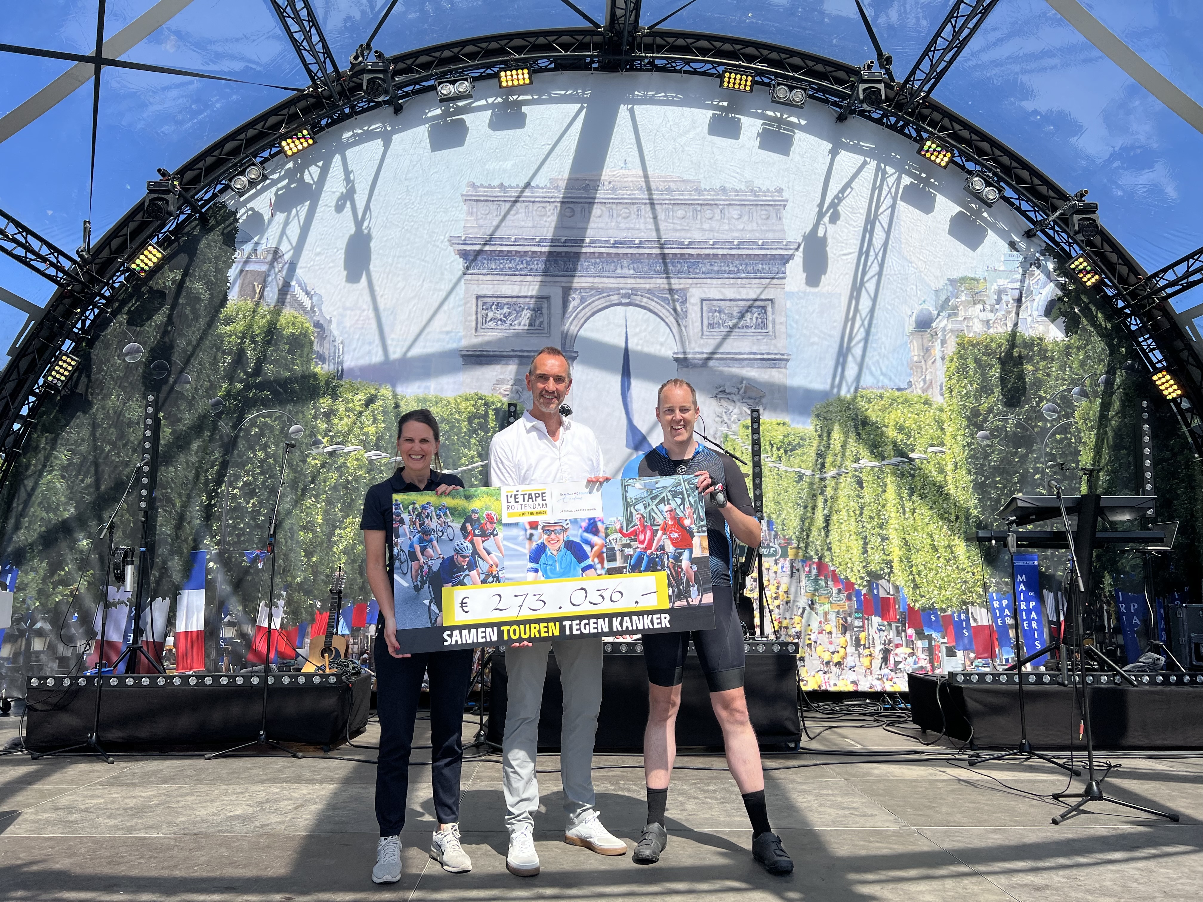 Geweldig! Zo kunnen we de dag in één woord samenvatten. Zaterdag 16 juli vond de eerste editie van de L’Étape Rotterdam by Tour de France Charity Rides plaats. Na de eerdere succesvolle edities van Tour de Rotterdam, waren de L’Étape Charity Rides ook een groot succes. Bijna 1500 deelnemers stonden aan de start op deze zonnige dag!De deelnemers hebben veel donaties opgehaald. De teller nam zaterdag nog een eindsprint voordat het bedrag bekend werd gemaakt. Met elkaar hebben we het fantastische bedrag van € 273.036,- kunnen overhandigen aan Leonore Tuijt (directeur Erasmus MC Foundation) en Peter Blangé (directeur Rotterdam Topsport), dat met wetenschappelijk onderzoek in het Erasmus MC Kanker Instituut de kwaliteit van leven van alle kankerpatiënten vóór, tijdens en na de behandeling wil verbeteren.