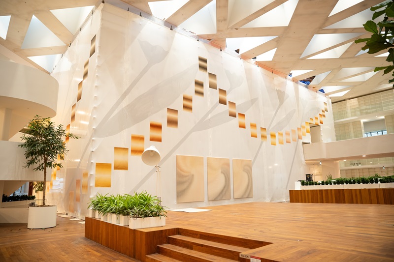 De kunstenaar liet zich inspireren door het emancipatoire karakter en de inclusiviteit in dit gebouw. Hij geeft dit weer in de tweede laag van het kunstwerk dat bestaat uit zogenaamde gradiëntschilderijen in alle menselijke huidskleuren. Elk doek heeft een eigen huidskleur die verloopt van donker naar licht. De schilderijen op canvas zijn over de bloemen gehangen in een dynamische beweging. Dit verwijst naar migratie die altijd bewegelijk is.