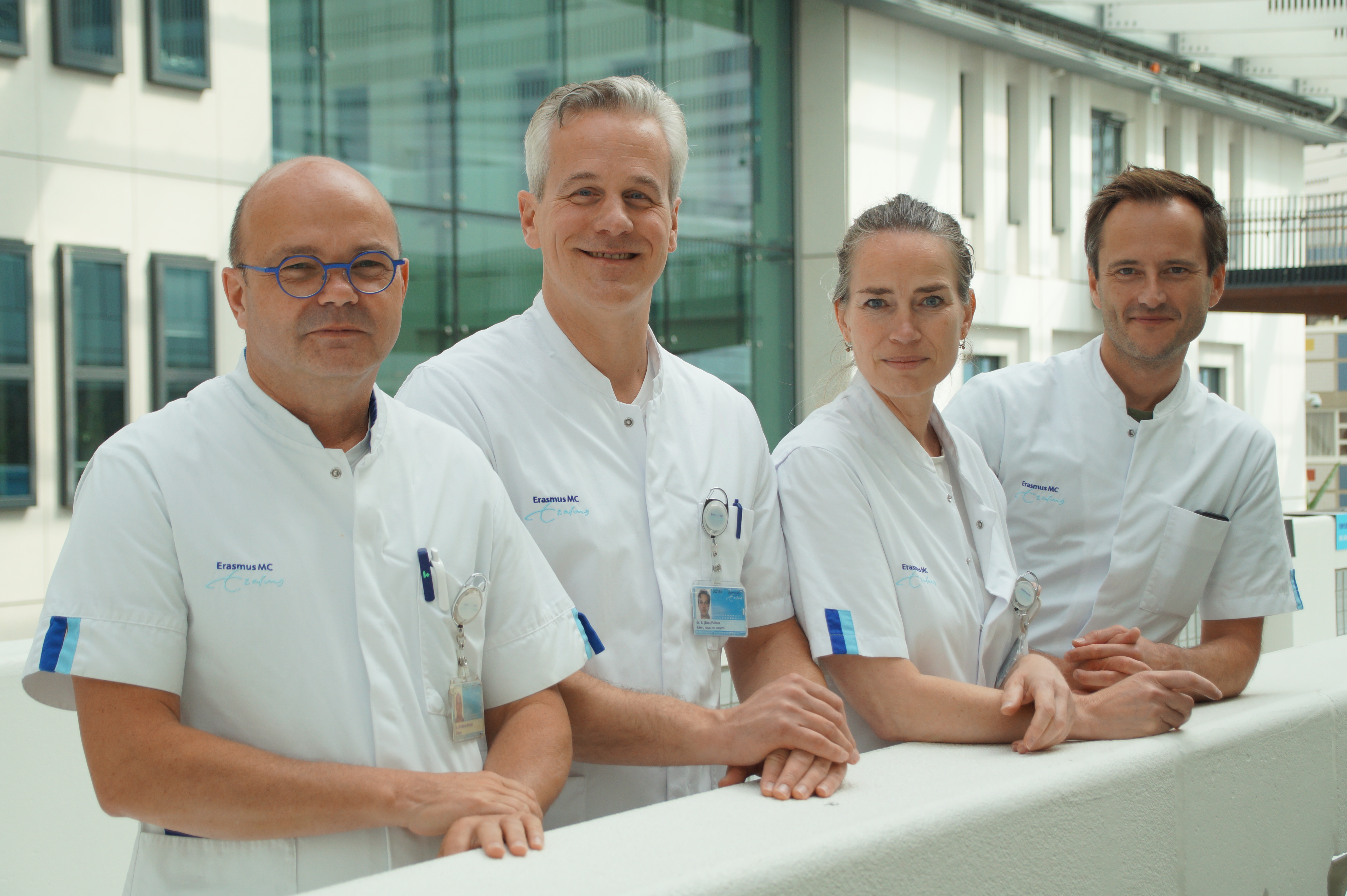 Op de foto van links naar rechts; Marco Schnater, kinder- en longchirurg, Bas Pullens, kinder-KNO-arts, Hester Langeveld, kinderchirurg (lid WEVAR team) en Stijn Keereweer, KNO-arts, Hoofd-Hals Chirurg.