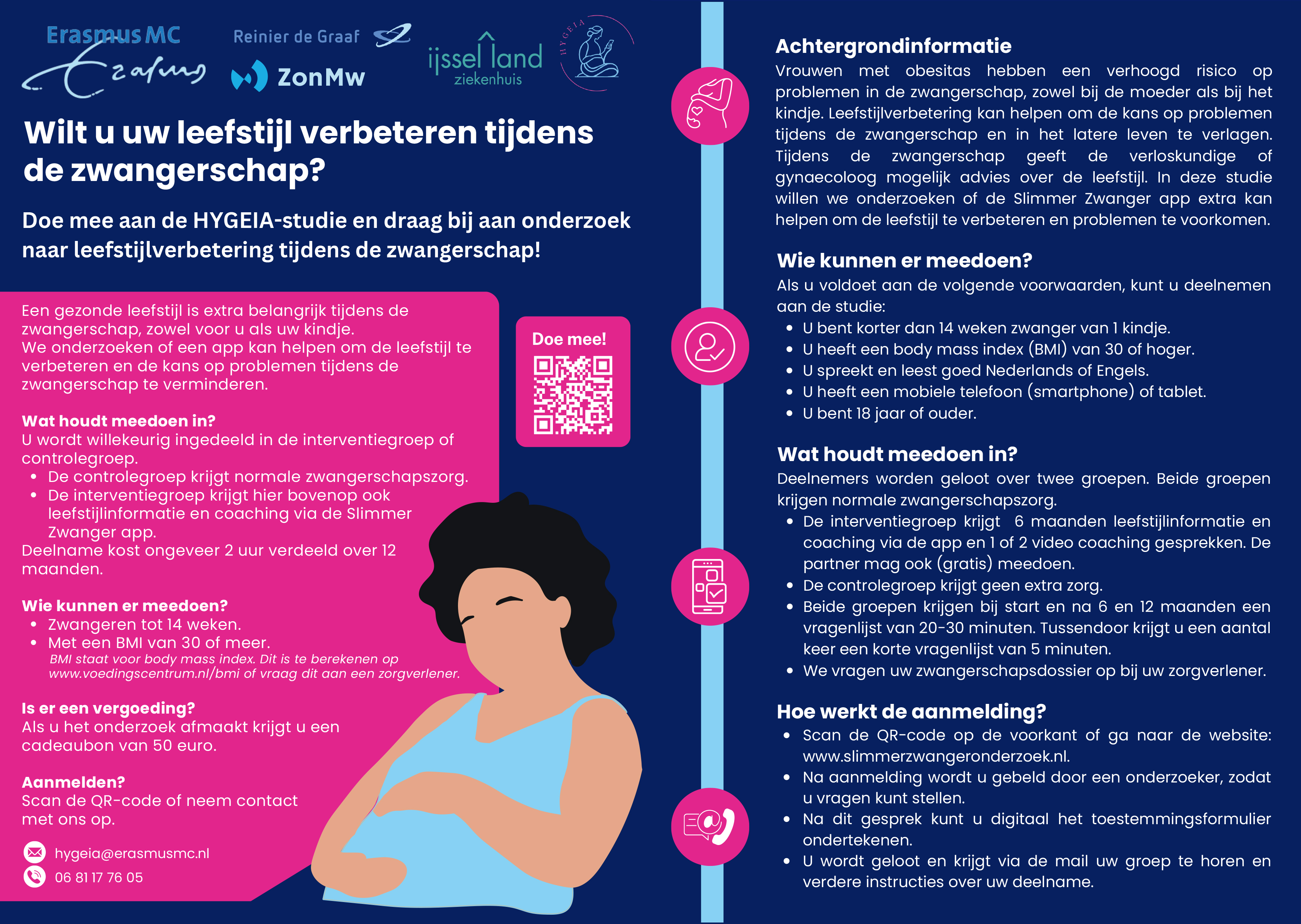 Voor meer informatie of aanmelden kijkt u op de website www.slimmerzwangeronderzoek.nl. Na aanmelding wordt u gebeld door een onderzoeker, zodat u vragen kunt stellen. Nadat u een toestemmingsformulier heeft ondertekend, wordt u in een van de groepen geloot.