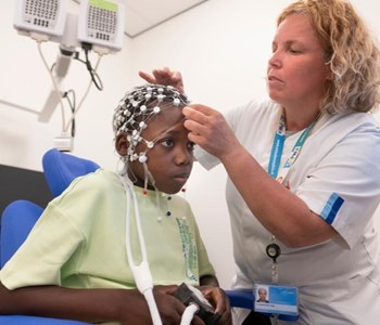 In het Kinderhersencentrum behandelen we jaarlijks 5.000 nieuwe patiënten met complexe (of meerdere) aandoeningen aan het hoofd, de hersenen en de zintuigen. Denk aan kinderen met hersentrauma, een gezichtsafwijking, moeilijk behandelbare epilepsie of autisme op zeer jonge leeftijd. We beginnen onze zorg zo vroeg mogelijk en zijn pas tevreden als ieder kind met een hersenaandoening of ontwikkelingsachterstand zo goed mogelijk functioneert en mee kan doen in de samenleving.