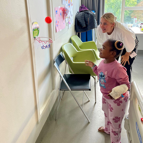 Het doel van het beweegprogramma is duidelijk: iedere patiënt krijgt dagelijks een beweegmoment. Joella van Geene, de eerste beweegagoog van het Sophia Kinderziekenhuis, zet zich in om patiënten en hun families op een speelse manier in beweging te krijgen. Zo draagt het programma bij aan herstel, plezier én een betere kwaliteit van leven.