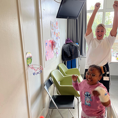 ‘Tijdens mijn stage als beweegagoog bij de afdeling fysiotherapie dacht ik meteen: dit wil ik! Dit is mijn droombaan,’ vertelt Joella enthousiast. ‘Toen later de mogelijkheid zich voordeed om dit na mijn afstuderen als baan te doen, kon ik mijn geluk niet op. Kinderen zien lachen en plezier hebben in plaats van alleen ziek te zijn, dat geeft zoveel voldoening.’