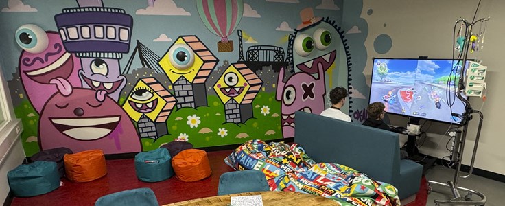 Om de ruimte nog leuker te maken, heeft kunstenaar OXALIEN een fantastische muurschildering gemaakt. Nu is de Chill & Game Zone helemaal af! Nieuwsgierig naar de muur? Kom het eindresultaat in het echt bewonderen!