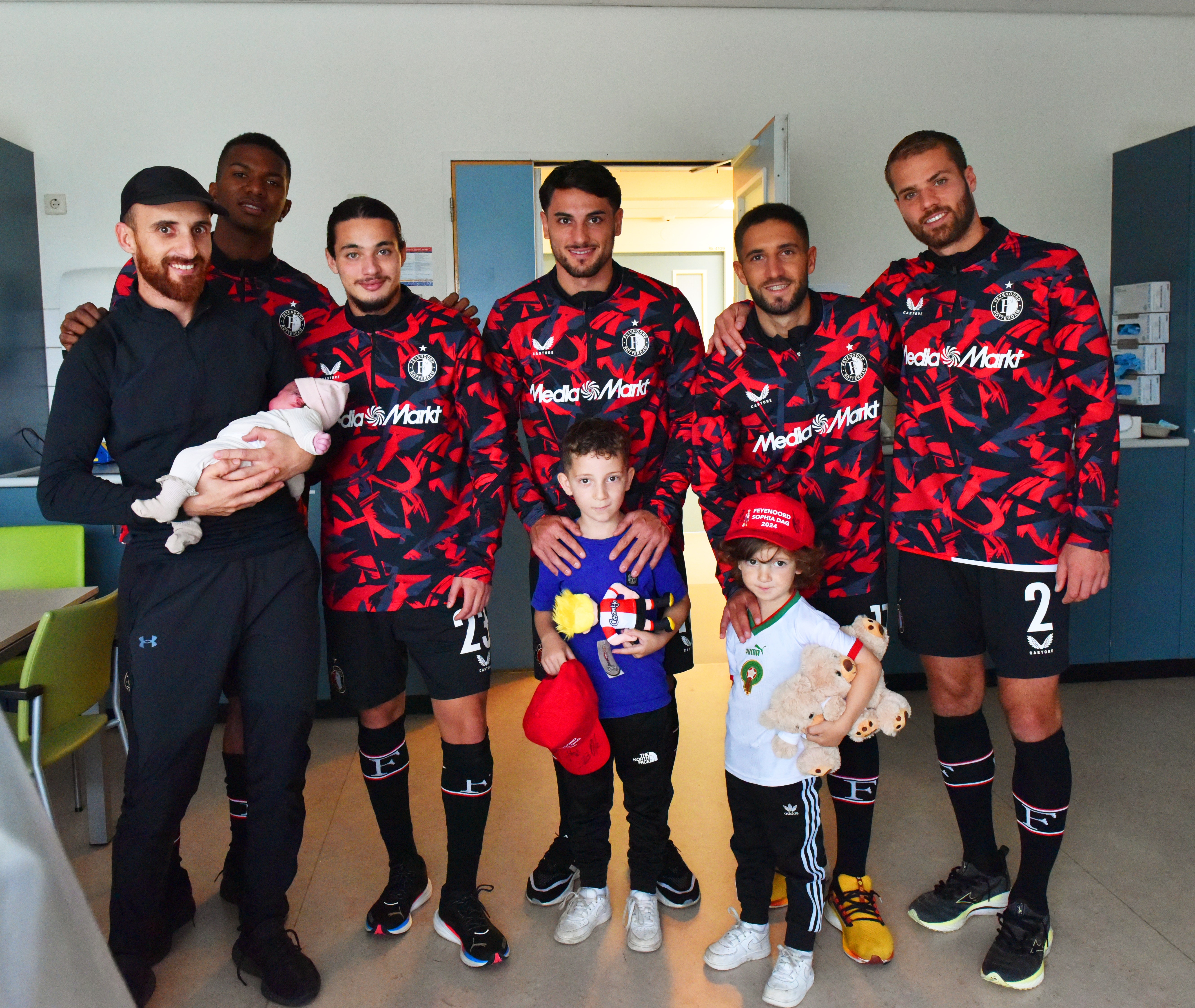 Na de rondgang langs de afdelingen komen de spelers naar de grote hal, waar ze spelletjes doen met de kinderen. Het is natuurlijk ook het perfecte moment op met hen op de foto te gaan. ‘Om mijn papa jaloers te maken’, zegt één van kinderen met een grote glimlach. De meeste aanwezigen zijn zelf enorm fan van de club en noemen het ‘de mooiste dag in tijden’. De Feyenoorders nemen alle tijd om de patiënten en hun familie te woord te staan. Eén ouder is ontroerd: ‘We zijn thuis allemaal groot fan van Feyenoord. Het raakt mij om deze speciale aandacht aan de kinderen te zien’.