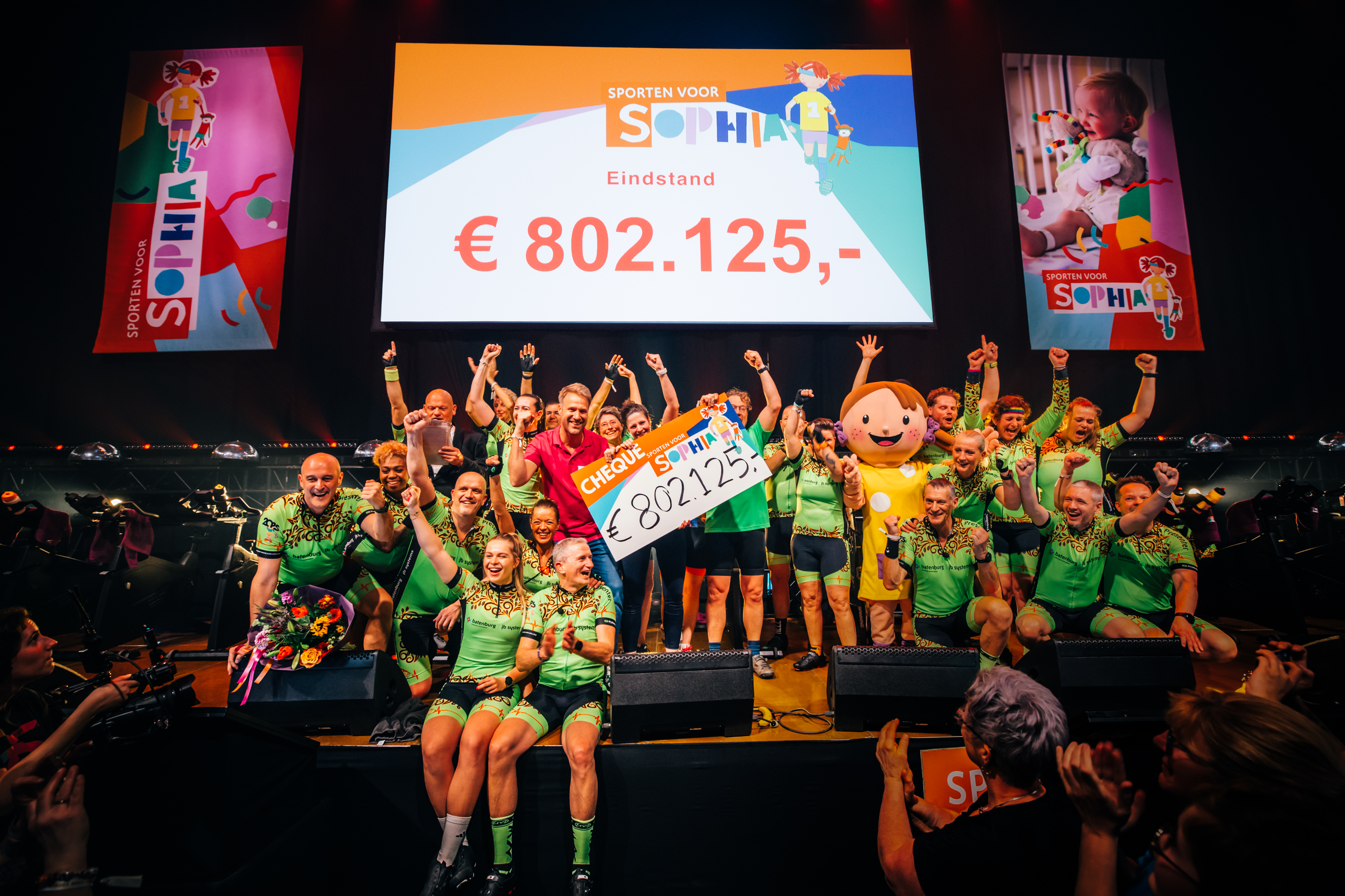 Drie dagen lang hebben ruim 2200 fietsers (waaronder een heleboel collega’s), meer dan 30.000 donateurs en honderden vrijwilligers zich ingezet voor het Sophia Kinderziekenhuis tijdens de grootste spinningmarathon van Nederland, georganiseerd door de Stichting Vrienden van het Sophia. Met een recordbedrag van €802.125,- als resultaat!