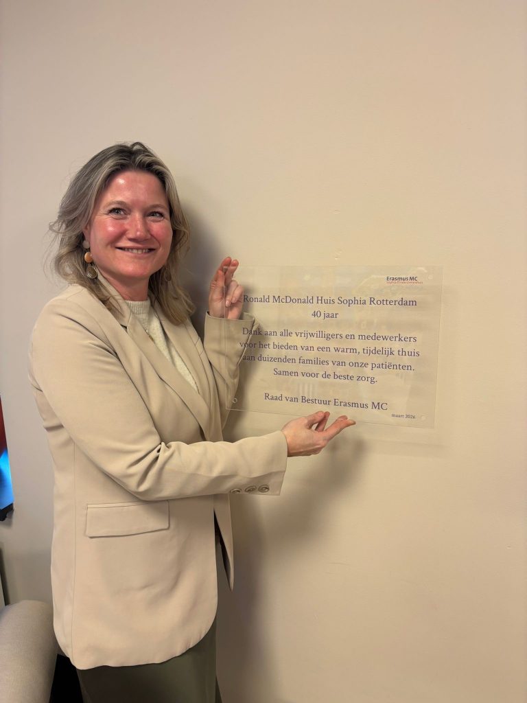 Annet Koster, voorzitter van het bestuur van het Ronald McDonald Huis, reageerde zichtbaar geraakt: ‘Wat een fantastische erkenning. Het is een symbiotische verhouding: het één kan eigenlijk niet zonder het ander. Wij zijn er trots op dat wij kunnen bijdragen zodat het Sophia Kinderziekenhuis de beste zorg voor patiënten en hun gezinnen kan leveren. Deze warme woorden zijn echt een bevestiging van onze fijne samenwerking’.