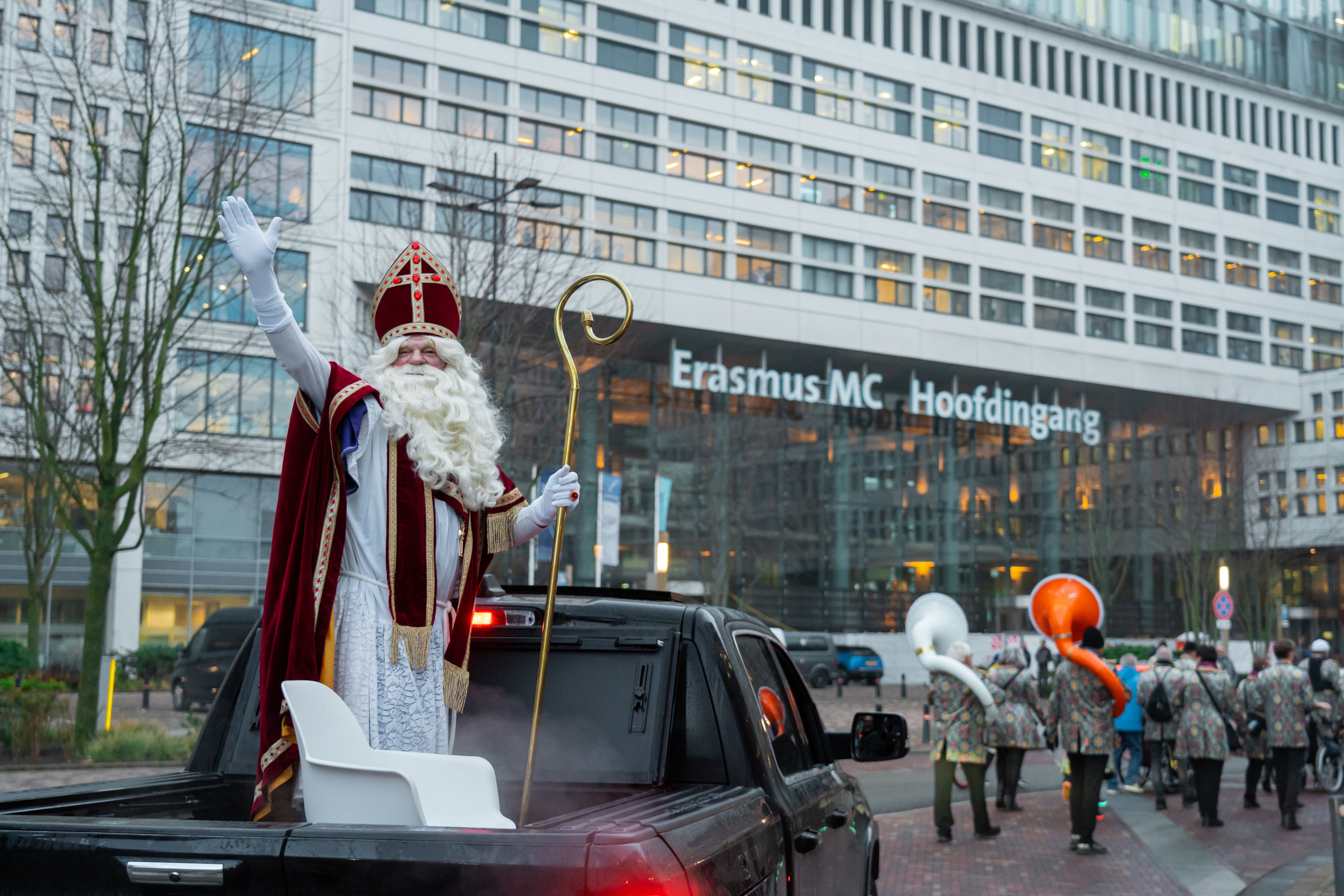 Bij de hoofdingang van het Erasmus MC stond Stefan Sleijfer, lid van de Raad van Bestuur, klaar om de Sint en zijn Pieten officieel welkom te heten. Onder muzikale begeleiding van het orkest vervolgde de stoet zijn weg naar het Sophia Kinderziekenhuis, waar onderweg nog een aantal stops werden gemaakt voor een gezellig praatje of dansje met patiënten, medewerkers en bezoekers. Sinterklaas zorgde voor een glimlach op ieders gezicht!