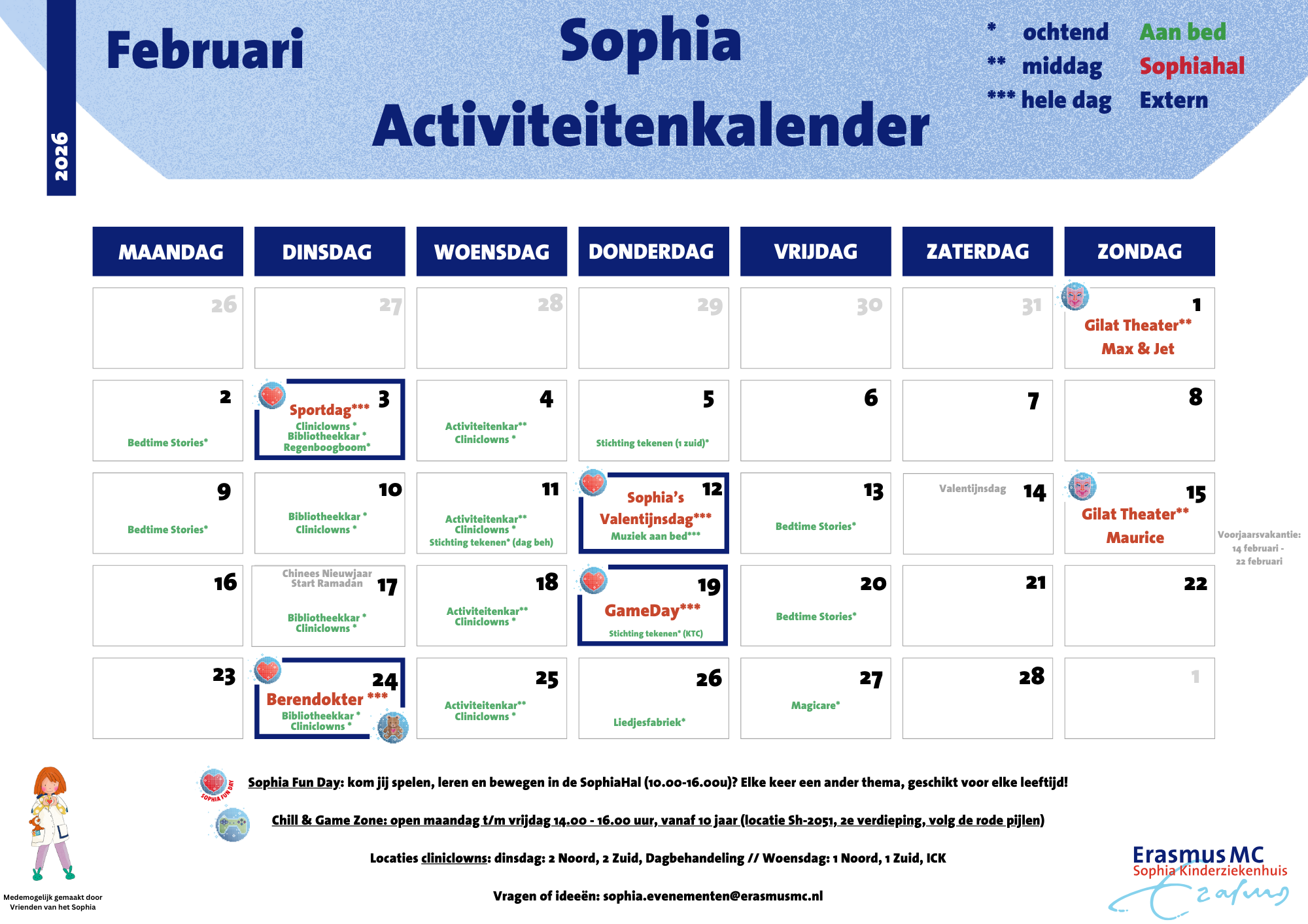Iedere week hebben wij op dinsdag of donderdag van 10.00 - 16.00 uur een Sophia Fun Day. De hal van Sophia is dan speciaal voor jullie gevuld met leuke activiteiten en is er van alles te doen, iedere keer met een ander leuk thema. Kijk in de activiteitenkalender wat wij deze dag gaan doen tijdens de Sophia Fun Day.