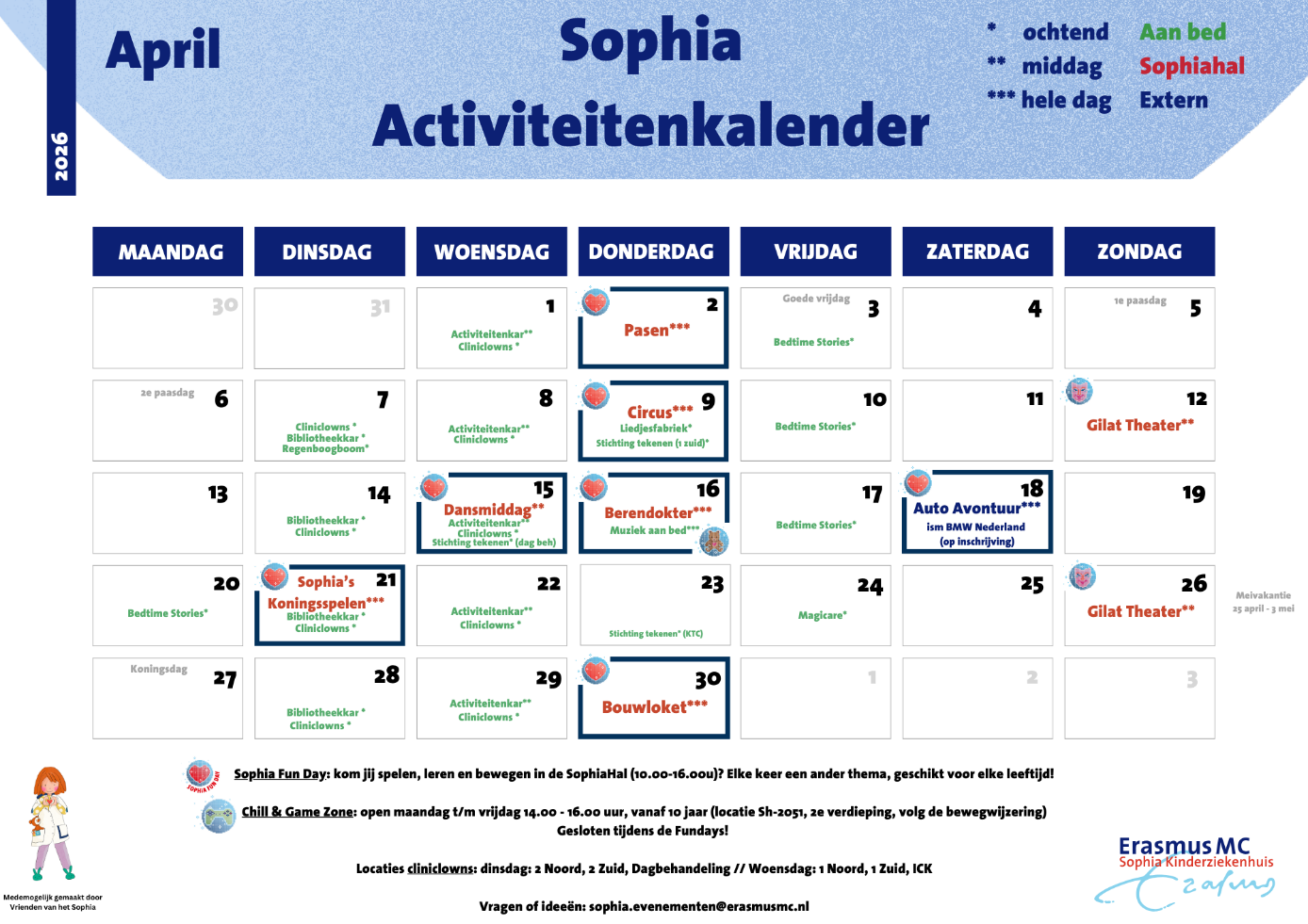 Iedere week hebben wij op dinsdag of donderdag van 10.00 - 16.00 uur een Sophia Fun Day. De hal van Sophia is dan speciaal voor jullie gevuld met leuke activiteiten en is er van alles te doen, iedere keer met een ander leuk thema. Kijk in de activiteitenkalender wat wij deze dag gaan doen tijdens de Sophia Fun Day.