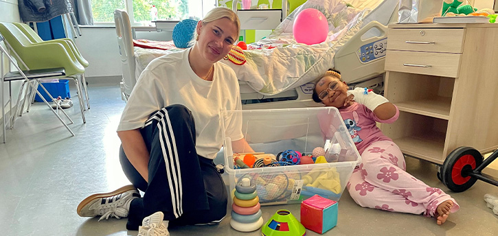 Het doel van het beweegprogramma is duidelijk: iedere patiënt krijgt dagelijks een beweegmoment. Joella van Geene, de eerste beweegagoog van het Sophia Kinderziekenhuis, zet zich in om patiënten en hun families op een speelse manier in beweging te krijgen. Zo draagt het programma bij aan herstel, plezier én een betere kwaliteit van leven.