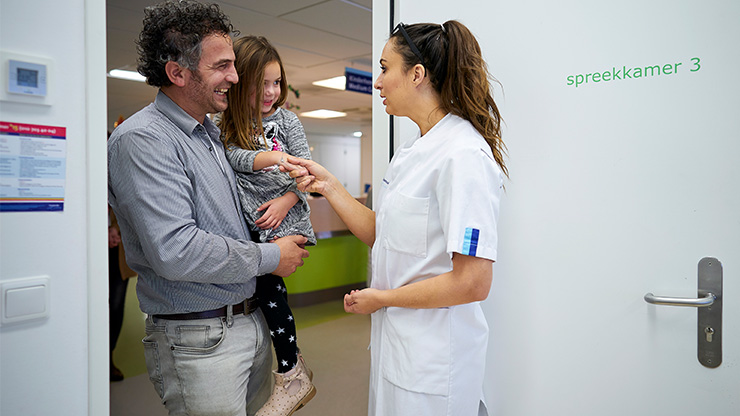 Tijdens het eerste spreekuur geven wij vaak voornamelijk informatie. Wij kunnen lichamelijk onderzoek doen, wij wegen of meten uw kind bijvoorbeeld. Dit doet de polikliniekassistent meestal. We kunnen ook kijken naar de voortgang van een behandeling of de resultaten van een onderzoek.