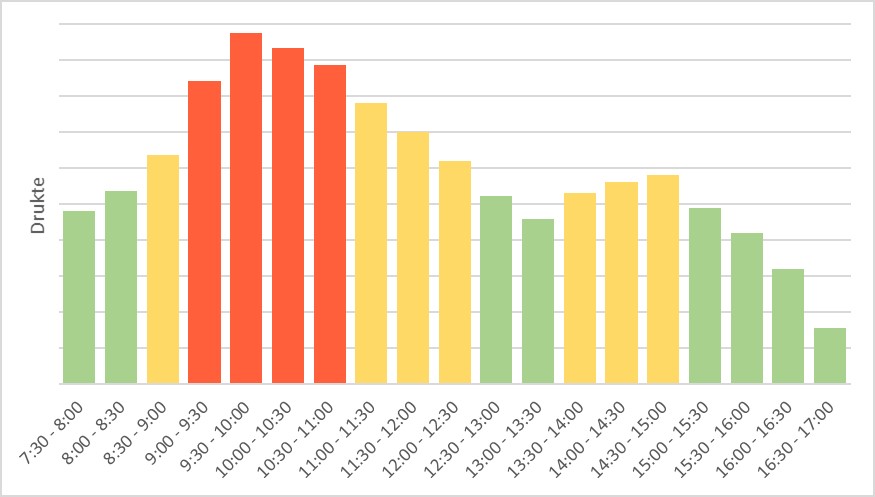 Hieronder ziet u welke dagen van de week druk of rustig zijn. Op vrijdag wordt u het snelste geholpen..